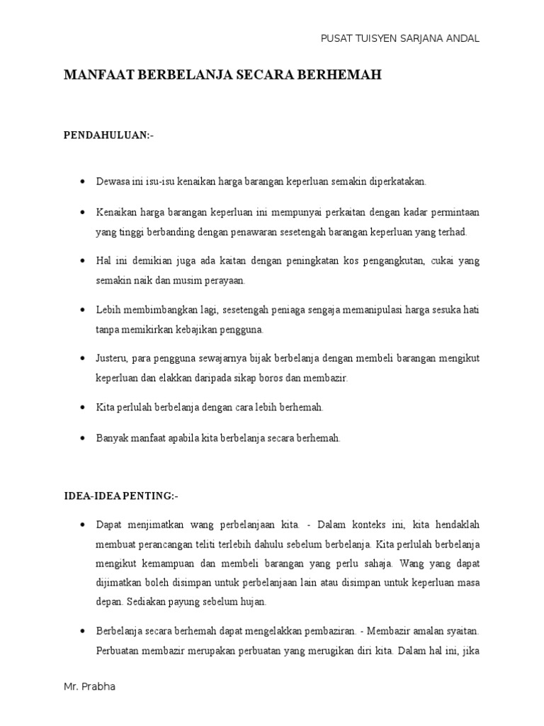 Contoh Karangan Langkah Langkah Untuk Menjimatkan Perbelanjaan