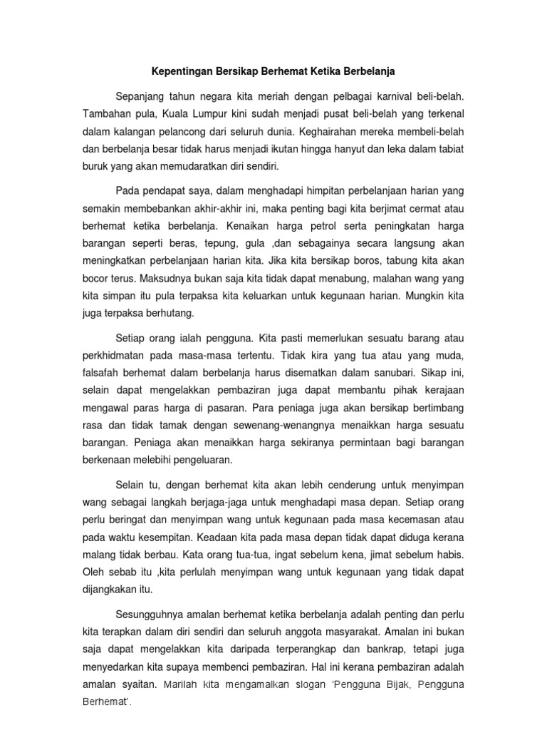 Contoh Karangan Amalan Berbelanja Secara Berhemah Temblor En