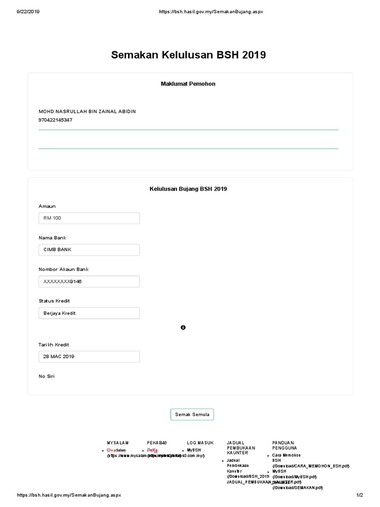 Https Bsh Hasil Gov My Semakan Kelulusan
