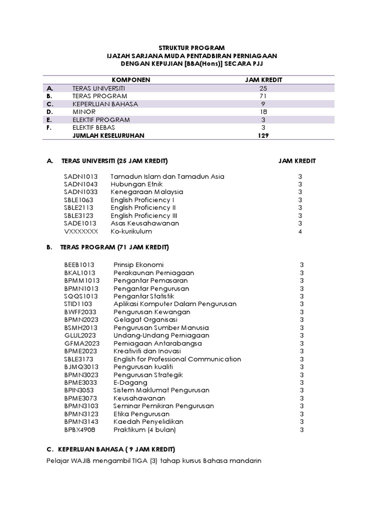 Struktur Program Bba