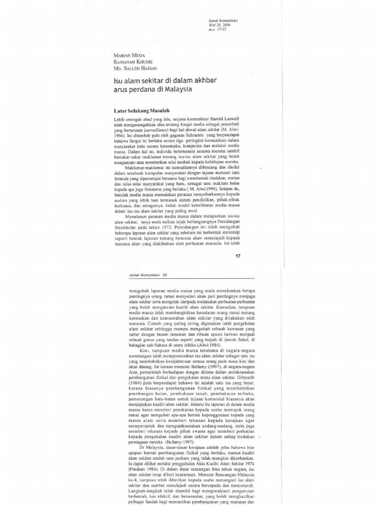 Isu Alam Sekitar Di Dalam Akhbar Arus Perdana Di Malaysia Ukm Journal Article Repository