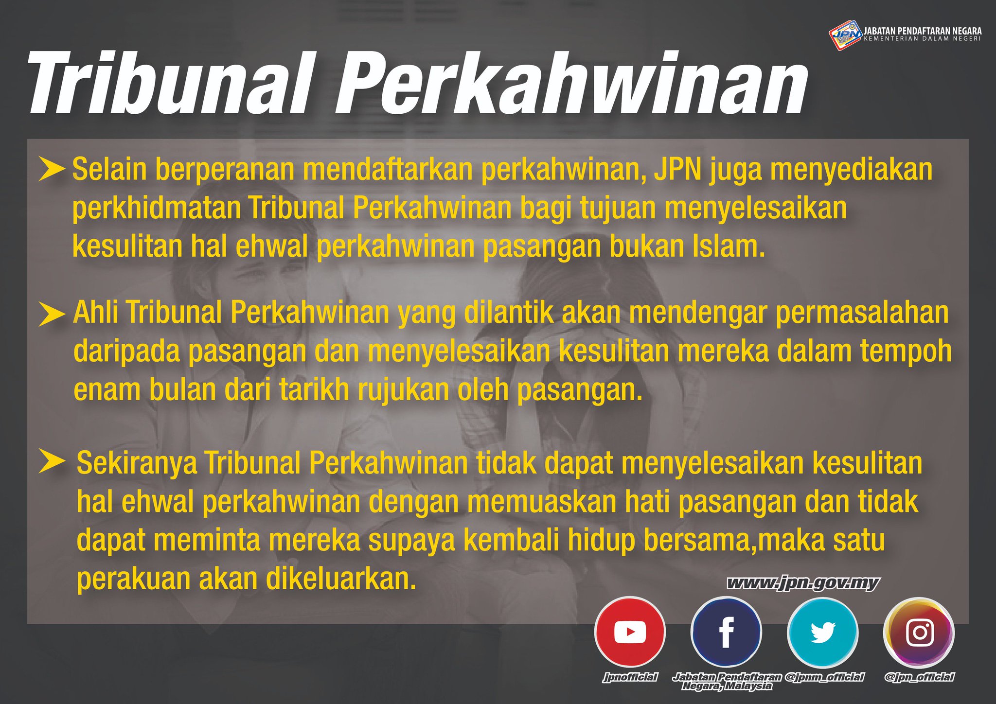 Bertanggungjawab dalam urusan pentadbiran dan kewangan bahagian. Government building in kuala lumpur kuala lumpur. Jabatan pendaftaran negara atau jpn merupakan sebuah badan di bawah kementerian dalam negeri yang bertanggungjawab mendaftar peristiwa peristiwa penting setiap individu seperti maklumat kelahiran kematian pengangkatan perkahwinan dan perceraian. Perkahwinan perceraian dan ruju.
