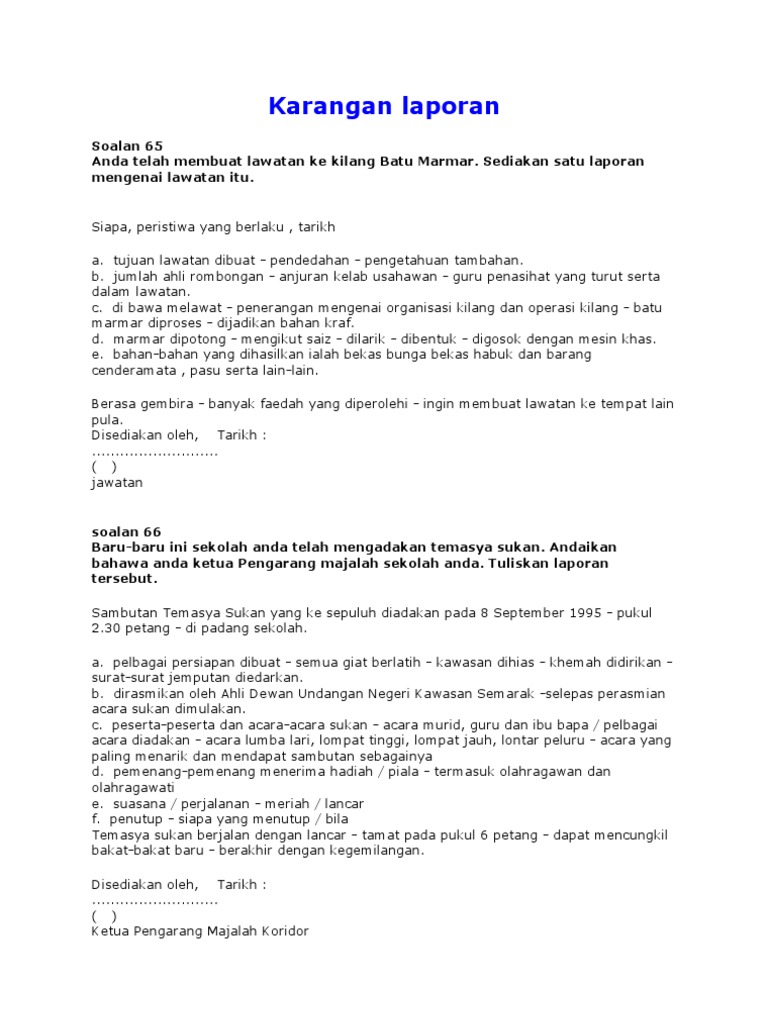 Bahasa Melayu Contoh Karangan Laporan