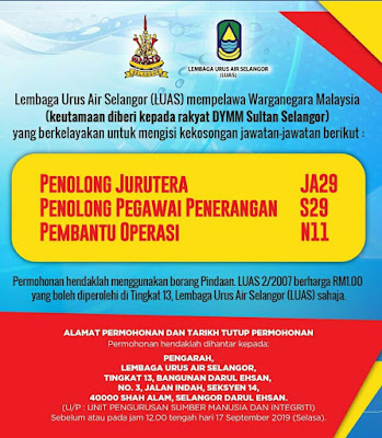 Kerja Kosong Lembaga Urus Air Selangor 17 Sept 2019 Nak Info Jauh
