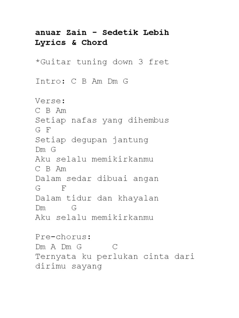 Lirik lagu anuar zain sedetik lebih. Setiap nafas yang dihembus setiap degupan jantung aku selalu memikirkanmu. Lirik lagu sedetik lebih anuar zain. Setiap nafas yang dihembus setiap degupan jantung aku selalu memikirkanmu. Lirik lagu sedetik lebih anuar zain.
