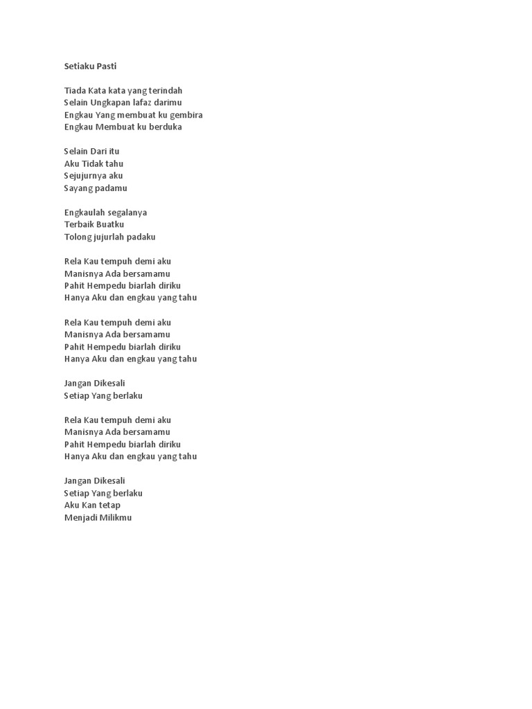 Beli lagu setiaku pasti di itunes store support artist dengan membeli lagu asli 1 1. Fara hezel setiaku pasti. Lirik lagu fara hezel setiaku pasti tiada kata kata yang terindah selain ungkapan lafaz darimu engkau yang membuatku gembira engkau membuat ku berduka selain dari itu aku tidak tahu sejujurnya aku sayang padamu engkaulah segalanya terbaik buatku tolong jujurlah padaku rela kau tempuh demi aku. Tiada kata kata yang terindah selain ungkapan lafaz darimu engkau yang membuat ku gembira engkau membuat ku berduka.
