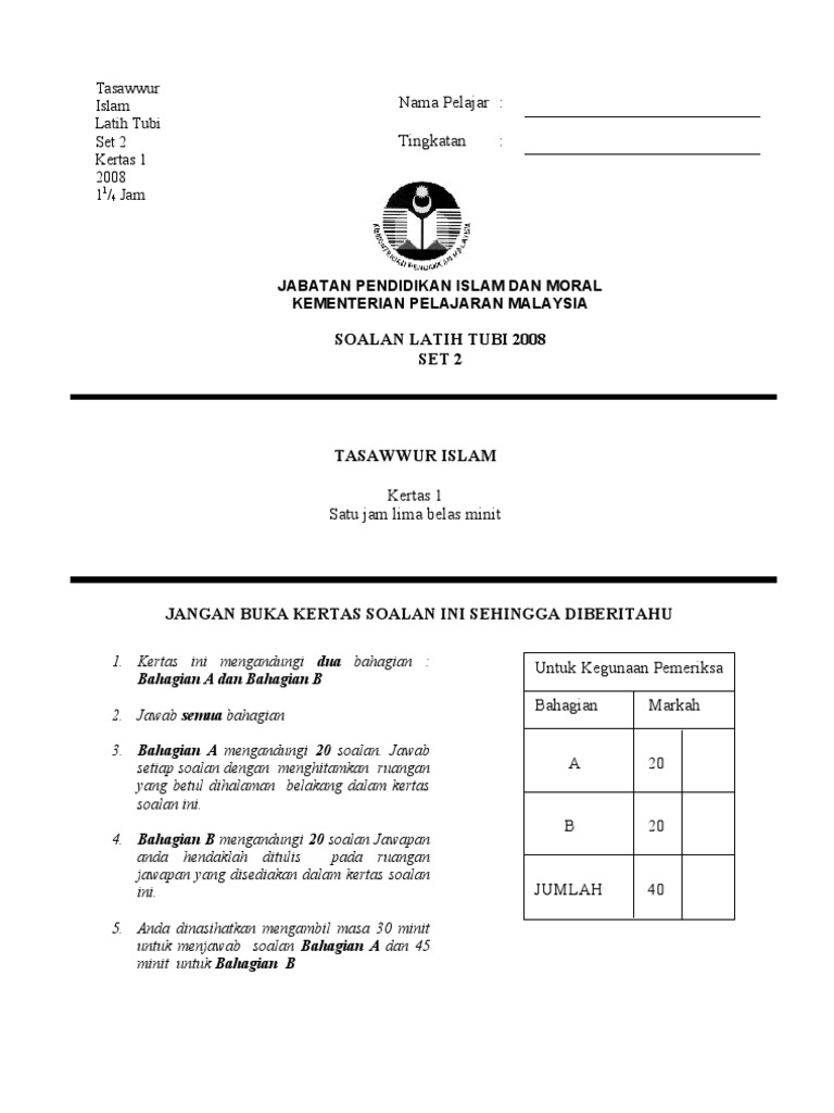 Muka Depan Kertas Peperiksaan Spm Pendidikan Islam