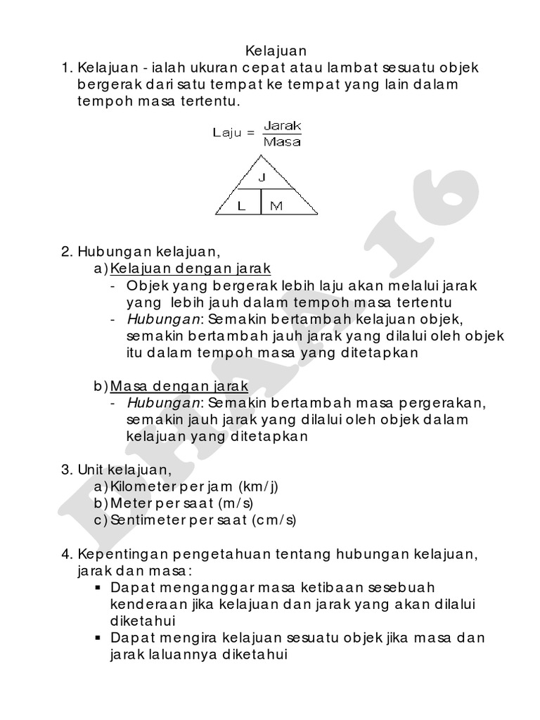 Nota Ringkas Sains Tahun 6 Kelajuan