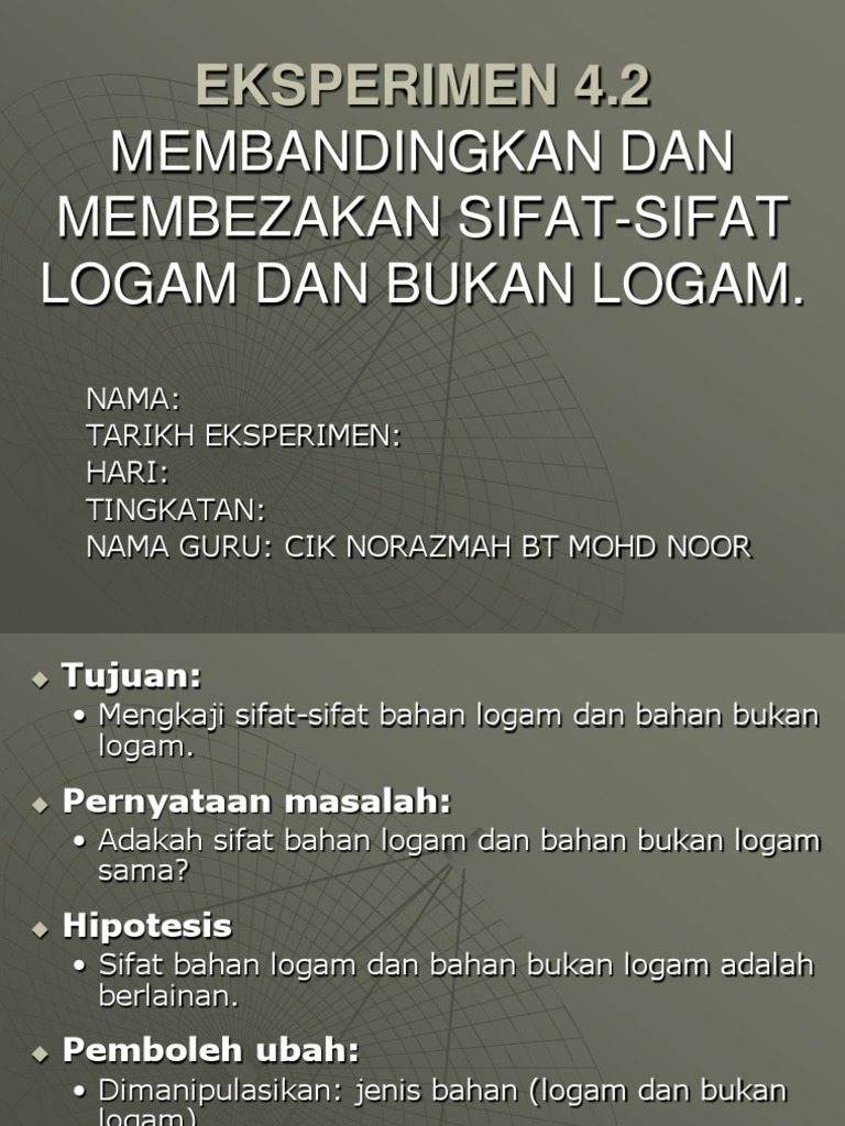Eksperimen 4 2 Membandingkan Dan Membezakan Sifat Sifat Logam Dan Bukan Logam