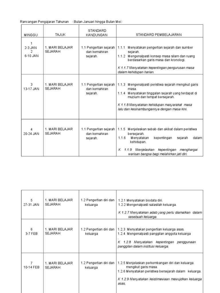1 1 2 mengenal pasti konsep masa silam dan ruang berdasarkan garis masa dan kronologi. 5 peristiwa paling berpengaruh dalam sejarah. Mari belajar sejarah standard kandungan standard pembelajaran tahap penguasaan 1 2 pengertian diri dan keluarga. 1 2 1 menyatakan biodata diri.
