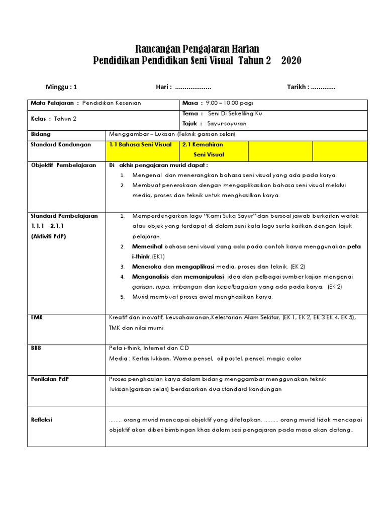 Doc Rancangan Pengajaran Harian Pendidikan Seni Visual Bil Perkara Dyana Nonong Academia Edu