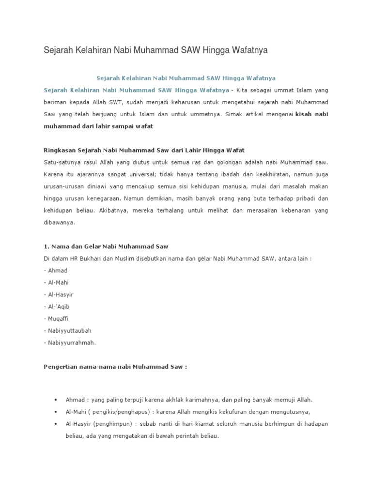 Sejarah Kelahiran Nabi Muhammad Saw Hingga Wafatnya Pdf