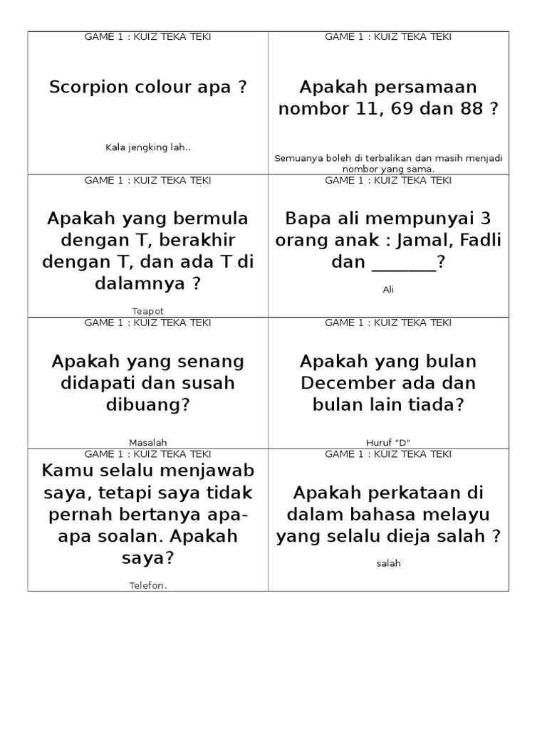 Pelbagai Contoh Teka Teki Paling Susah Beserta Jawapan Yang Berguna Untuk Ibubapa Pekeliling Terbaru Kerajaan
